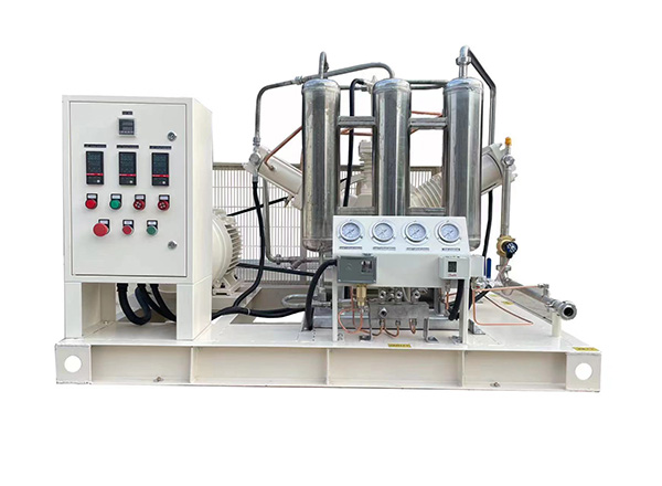 全無油設(shè)計,導向環(huán)、活塞環(huán)、活塞桿填料均采用自潤滑材料,無油潤滑。軸承部件采用耐高溫脂潤滑,不與壓縮介質(zhì)接觸,避免壓縮過程中對氣體的污染,保證氣體純度。根據(jù)實際用氣情況,壓縮機分為單級或多級壓縮;結(jié)構(gòu)形式分為單缸、雙缸、三缸、四缸及組合式多缸結(jié)構(gòu);冷卻方式分為風冷和水冷。